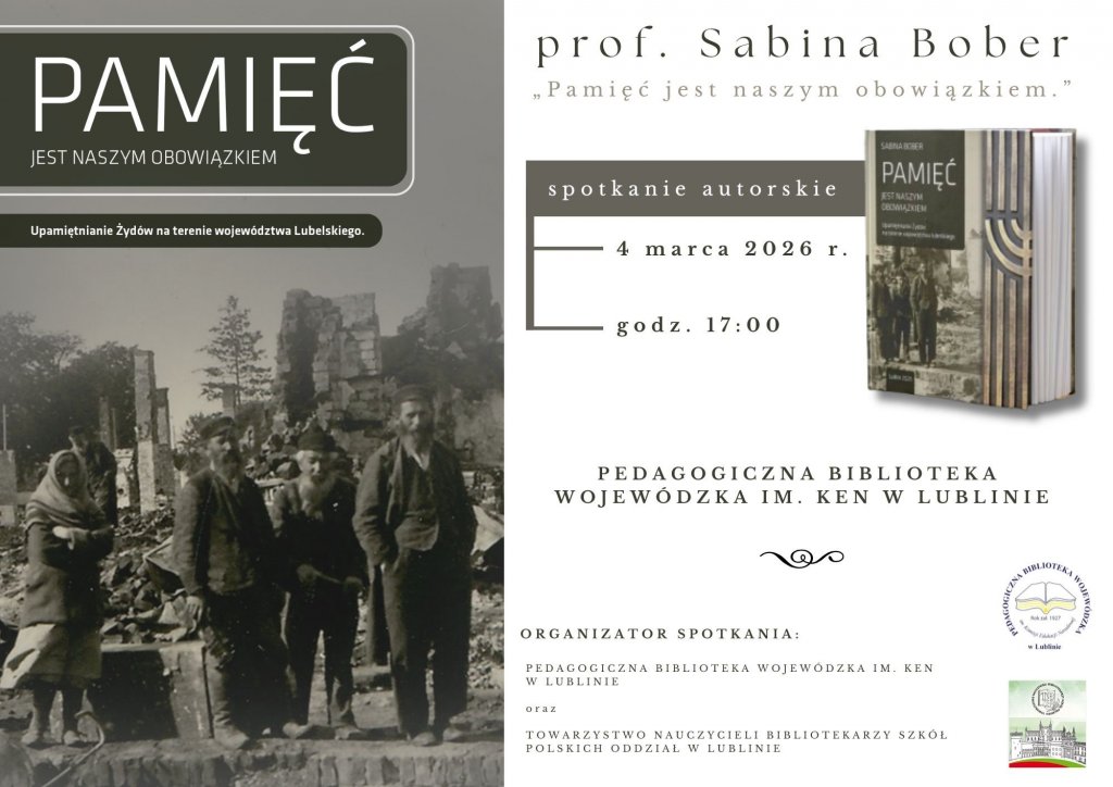Serdecznie zapraszamy na spotkanie autorskie z Panią Profesor Sabiną Bober w związku z promocją książki „Pamięć jest naszym obowiązkiem”.