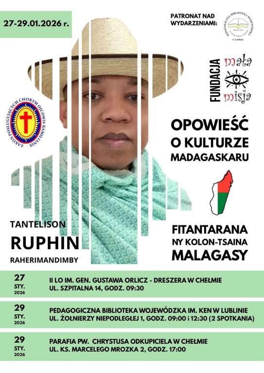 Wspólnie z Fundacją Mała Misja serdecznie zapraszamy na „FITANTARANA NY KOLON-TSAINA MALAGASY TOUR”, (tłum. „OPOWIEŚĆ O KULTURZE MADAGASKARU TOUR”) - czyli cztery niezwykłe wydarzenia w dwóch miastach: w Chełmie i Lublinie, którym patronujemy.