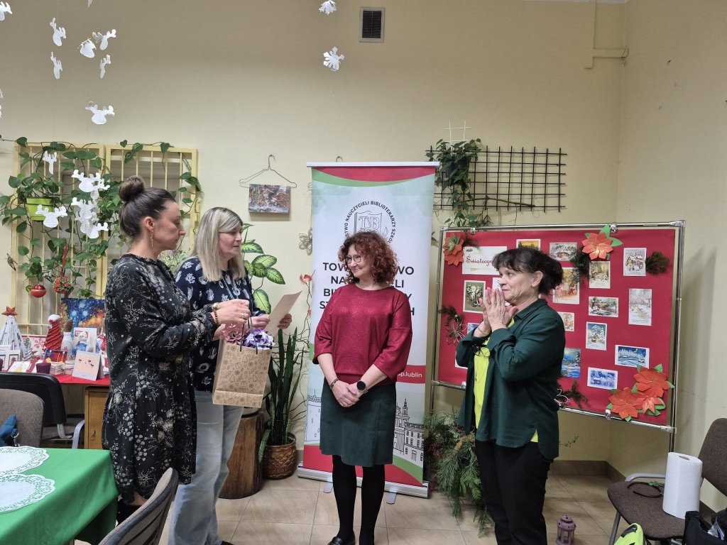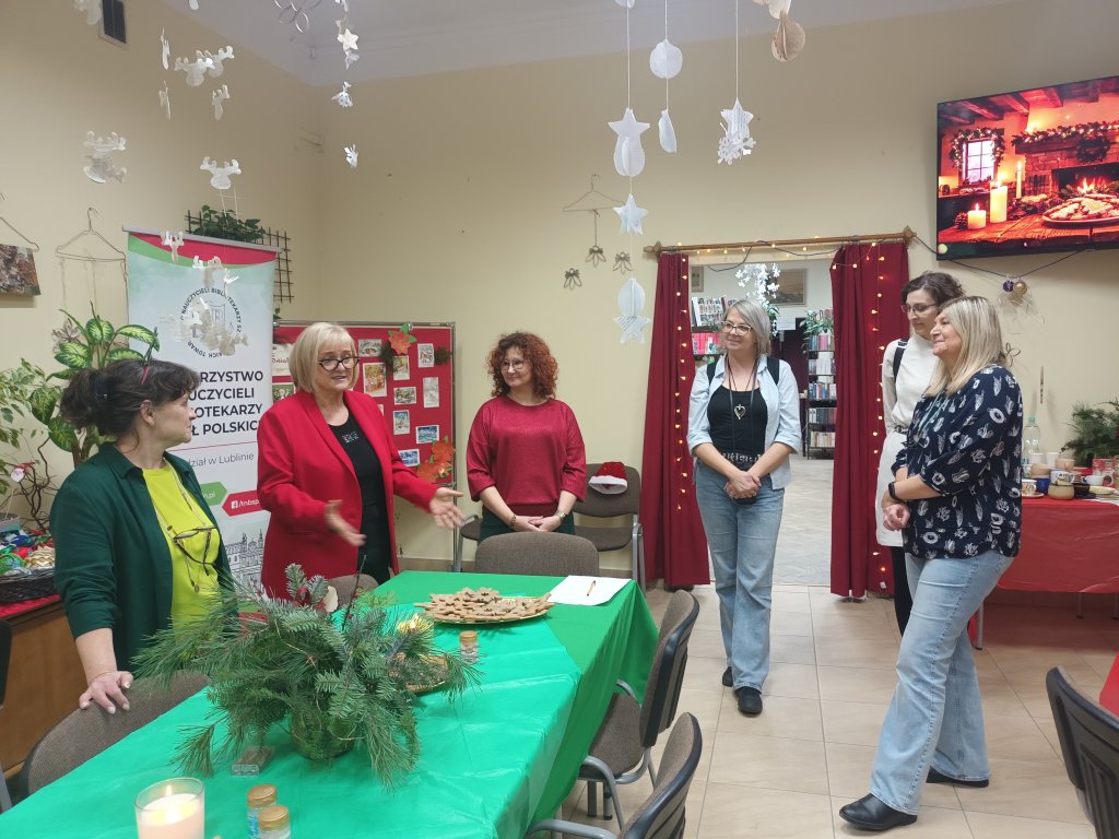 Nie mizerna, nie cicha, nie stajenka i nie licha lecz niezwykłe gościnna i przestronna biblioteka szkolna. W środowe popołudnie 10 grudnia 2025 r. (o tej porze roku to już w zasadzie noc), członkowie i sympatycy Lubelskiego Oddziału Towarzystwa Nauczycieli Bibliotekarzy Szkół Polskich w Lublinie spotkali się na niezwykłych warsztatach plastycznych w Zespole Szkół Chemicznych i Przemysłu Spożywczego im. gen. Franciszka Kleeberga w Lublinie.