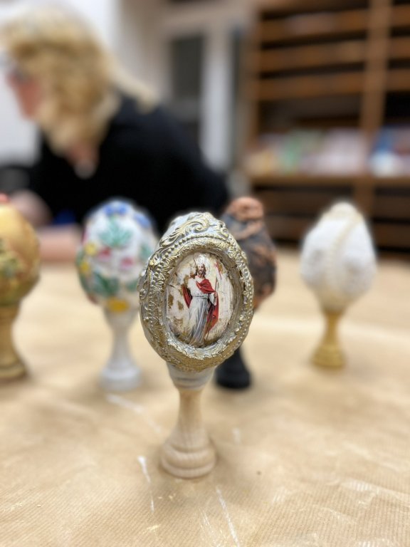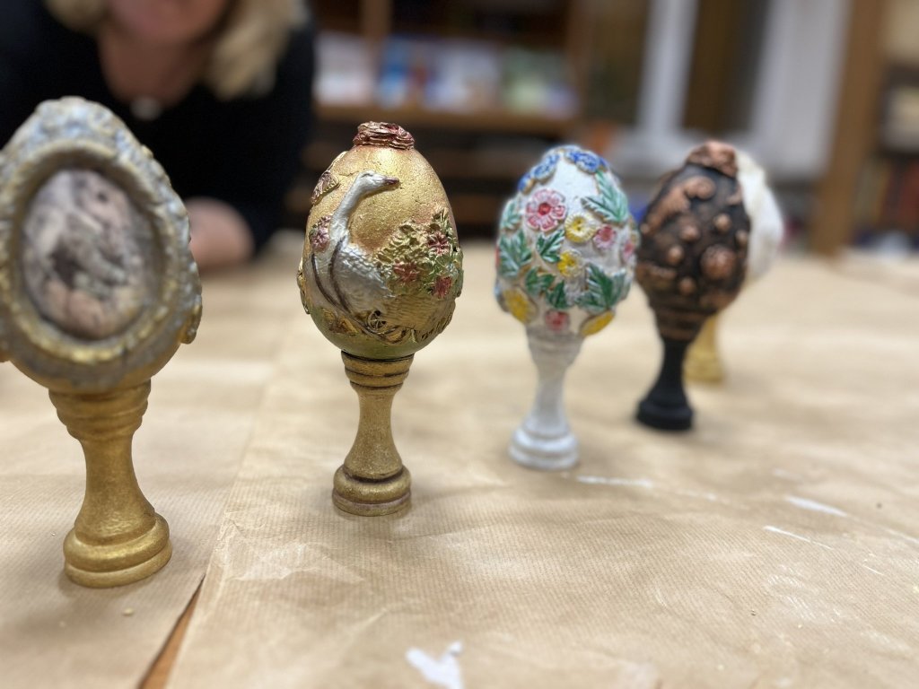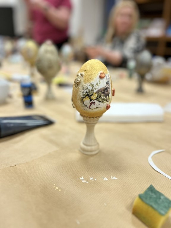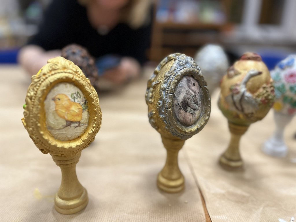 Uczestnicy poznali różne techniki zdobienia jaj, m.in. decoupage, pracę z farbami i elementami dekoracyjnymi. Powstały piękne, oryginalne prace, które z pewnością będą stanowiły wyjątkową ozdobę wielkanocnych stołów.