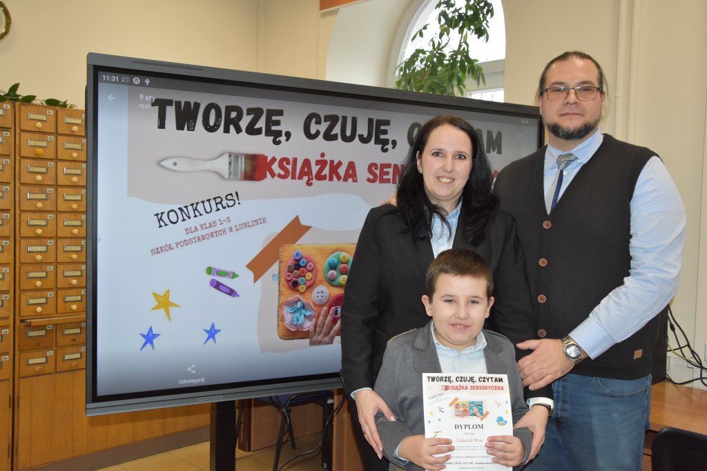 Z radością informujemy o zakończeniu pierwszej edycji konkursu dla uczniów klas I–III szkół podstawowych w Lublinie „TWORZĘ, CZUJĘ, CZYTAM – Książka sensoryczna” zorganizowanego przez naszą Bibliotekę.