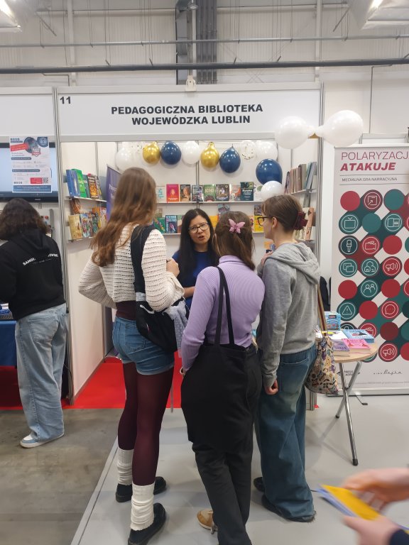 Bardzo dziękujemy organizatorom za zaproszenie do udziału w tegorocznej edycji. Biblioteka miała możliwość zaprezentowania swojej bogatej oferty edukacyjnej i czytelniczej. Przedstawiliśmy zbiory książek, czasopism, materiałów dydaktycznych oraz zasobów multimedialnych, które wspierają proces nauczania i uczenia się. Promowaliśmy nasze różnorodne działania, takie jak konkursy, warsztaty, lekcje i zajęcia edukacyjne na wszystkich poziomach nauczania. Zachęcaliśmy też uczestników targów do sięgania po książki i rozwijania swoich zainteresowań czytelniczych oraz do odwiedzin naszej Biblioteki podczas spotkań autorskich.