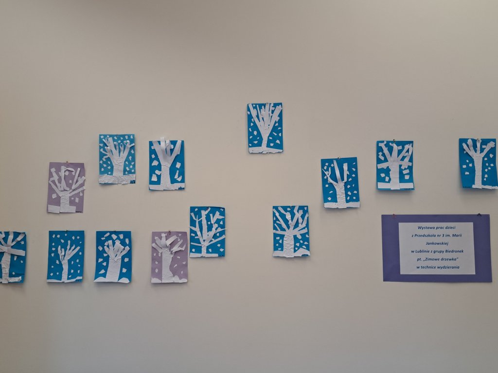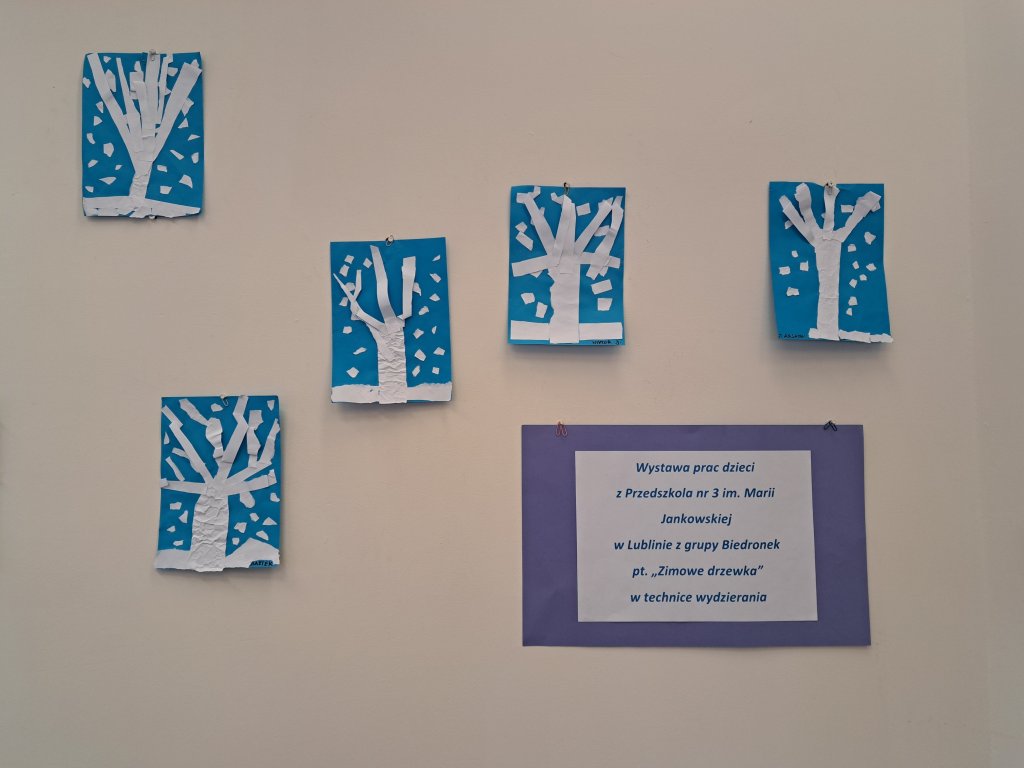 Z radością zapraszamy do obejrzenia wystawy prac plastycznych dzieci z Przedszkola nr 3 im. Marii Jankowskiej w Lublinie, z grupy Biedronek, pt. „Zimowe drzewka”.